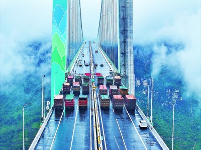 8月21日,在建世界第一高桥——贵州花江峡谷大桥正式启动荷载试验。2022年开工建设的花江峡谷大桥,跨越被誉为“地球裂缝”的花江大峡谷,是贵州省六枝至安龙高速公路的控制性工程。大桥全长2890米,其中主桥跨径1420米,桥面至水面高度625米。图为荷载试验现场。