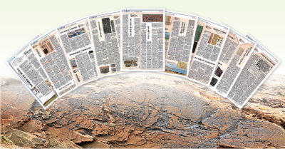 图为“昆仑石刻”学术争鸣专版部分版面图、石刻所在崖面。资料图片