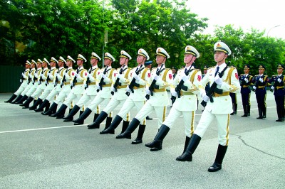 仪仗方队队员正在训练。本报记者 章文摄/光明图片