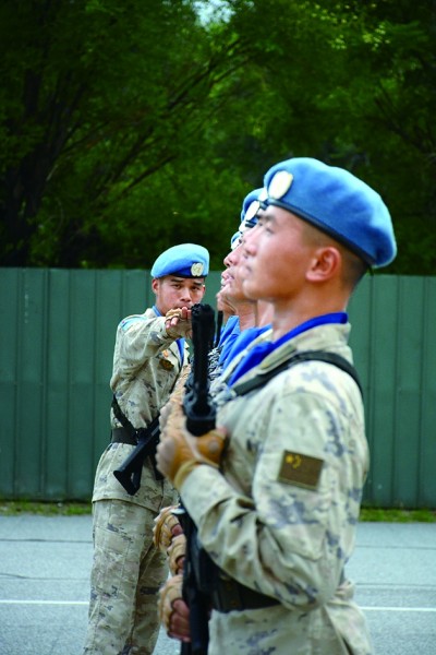 正在进行训练的维和部队方队队员。本报记者 刘岩摄/光明图片