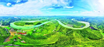 近日,在广东省肇庆市封开县贺江碧道画廊景区,“几”字形的河道与两岸青山、村庄相映成趣,构成一幅秀美的秋日山水画卷。何华文摄/光明图片