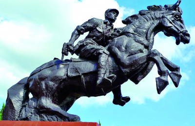 1985年9月3日,在我的家乡江苏盐城东台市东进广场立起了一尊大型雕塑《新四军东进》。雕塑本体高3.4米,长5米,宽1.2米,连同底座高达7米,巍巍然,展现了策马奋勇向前的战士形象。人们不仅从雕塑的气势中感受到新四军东进的雄姿,也会被其大无畏精神所鼓舞。这尊雕塑是我应家乡委托主持创作的,我时年23岁,正就读于南京师范大学美术系,为大二学生。