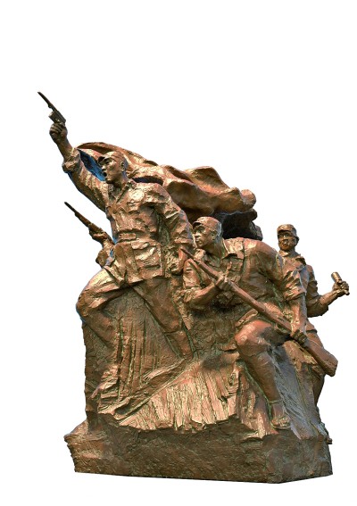 转眼到了2008年,我又受命为盐城新四军重建军部纪念馆创作刘少奇、陈毅、张云逸、邓子恢、赖传珠像,同时创作了雕塑《东进》立于正门广场。那吹军号的战士,巍然似山,迎着朝阳,面对辽阔的战场,吹响了气壮山河、响彻云天的东进号角!2020年,纪念馆易名为新四军纪念馆,家乡人民又再次嘱我以新四军战士冒着枪林弹雨浴血奋战的情景,创作一组雕塑《铁军忠魂》。战旗如云,所向披靡,呼应了广场吹军号的战士,这是人民战争的汪洋大海!从《新四军东进》,到《东进》,再到《铁军忠魂》,跨度35年的创作构成了一个整体,展现伟大的铁军精神。