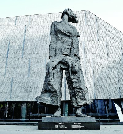 高达18米的建筑下,池水映天,如明镜鉴史。池边是千余米通向纪念馆大门的路,我以《逃难》为题塑造了十组人物,有妇女、儿童、老人,有知识分子、普通市民、僧人。其中,最让人悲悯的是婴儿趴在死去母亲身上吸吮最后一口奶的场面,它是以大屠杀幸存者常志强一家的悲惨遭遇为原型而创作的。我访问过常志强,他在回忆亲身经历的情景时仍老泪横流。这些被“复活”的冤魂放置于水池,与走向纪念馆的人们迎面相遇,时光在这里交错,控诉与对话时刻在进行,许多国际友人在此肃然……