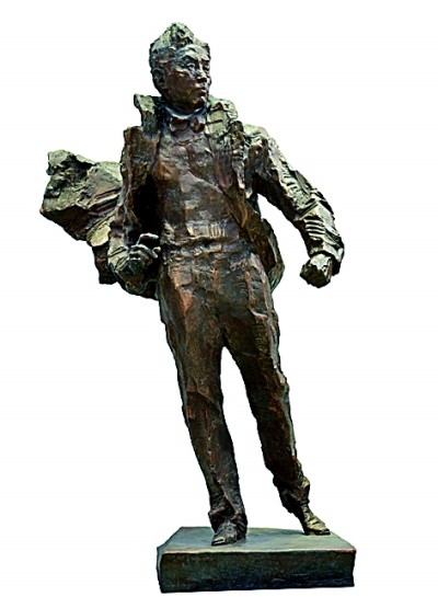 英雄是民族最闪亮的坐标,礼赞英雄,是永远的创作主题。要让其成为最动人的篇章,必须深刻领悟英雄内心深处的崇高境界,这境界始终与“爱国”紧密相连。“我们万众一心,冒着敌人的炮火,前进!冒着敌人的炮火,前进!前进!前进!进!”这激昂的旋律诞生于中华民族最危急的时候,它唤起亿万民众以血肉筑起新的长城。作为国家重大主题美术创作工程项目的《聂耳》雕像,我刻画的是正在酝酿谱写进行曲的聂耳。他沉浸于创作之中,步履坚定,飞扬的外衣恰似燎原的烽火,他的手在铿锵的音乐声中指挥千军万马奔向疆场……