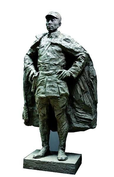肖像雕塑从内容和形式上看是个人的形象,但实质上是群体共性在个性中的表现。我为左权将军塑像,他面部肌肉线条的坚韧和目光的坚毅,折射出英雄的坚强意志和信念;挺拔的身躯和迎风的大衣,恰似太行山坚不可摧的岩石。他与东进的新四军战士形象遥相呼应,是“我们中华民族有同自己的敌人血战到底的气概”之写照。同样,在塑造抗联英雄赵一曼时,以汉白玉雕刻,塑造其手持驳壳枪、身先士卒的飒爽英姿,表现这位白山黑水中的玉魂。