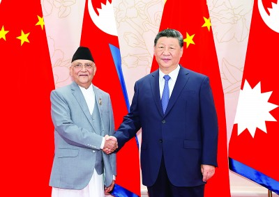 习近平指出,中国和尼泊尔是山水相连、世代友好的邻邦,也都是热爱和平、自立自强的国家。建交70年来,两国人民风雨同舟、休戚与共,共同书写了中尼睦邻友好的历史篇章。当前,中尼高质量共建“一带一路”合作稳步推进,两国人民更加相知相亲。中方愿同尼方一道努力,赓续传统友谊,推动中尼面向发展与繁荣的世代友好的战略合作伙伴关系得到新的更大发展。
