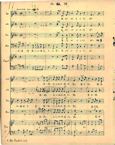 1939年2月,延安鲁迅艺术学院音乐系的学员受到中国人民抗日军事政治大学合唱队的影响,也组织合唱队唱起了《抗敌歌》《旗正飘飘》《玉门出塞》等抗战合唱曲。冼星海看在眼里,热血奔涌:要给大家写出更多新的合唱曲!