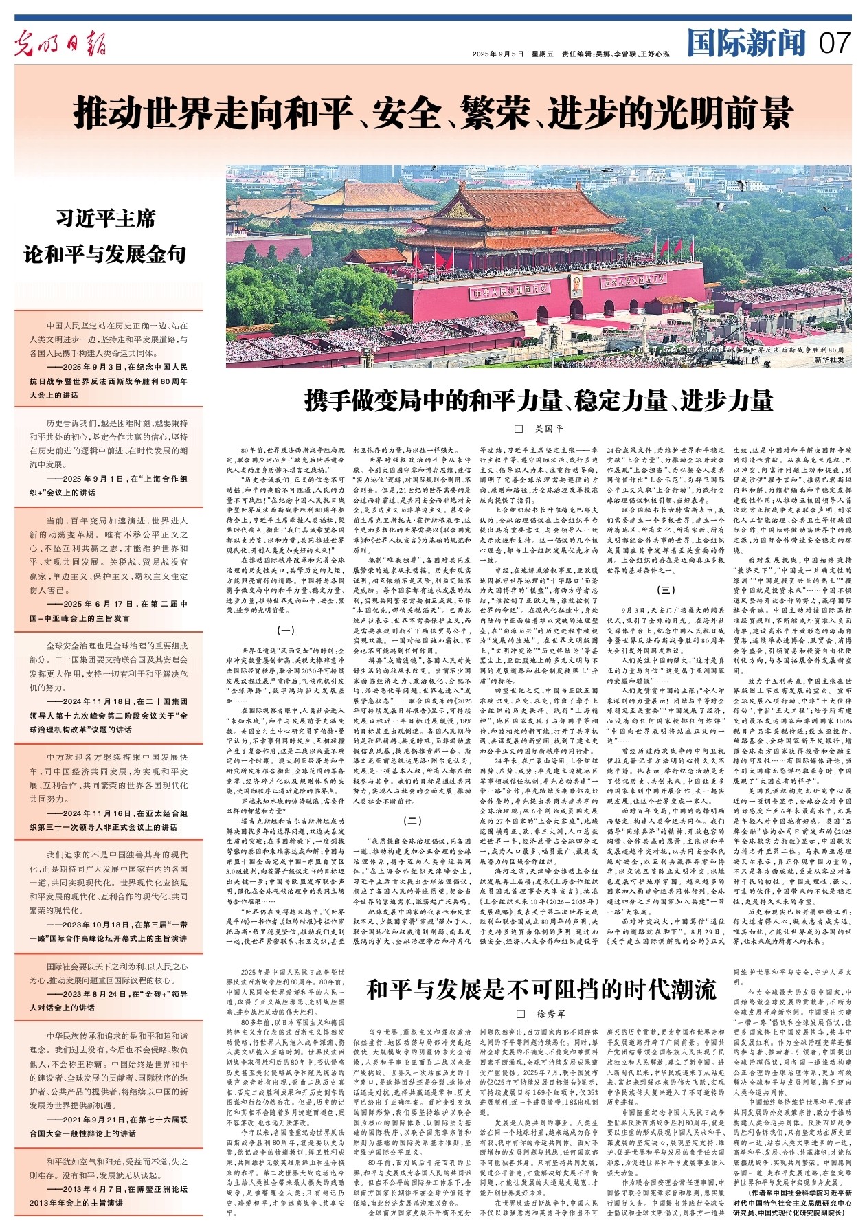 习近平主席论和平与发展金句