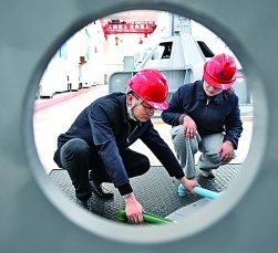工作人员在江都水利枢纽抽水站检查。新华社发
