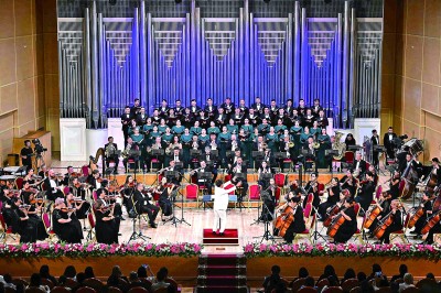 9月3日,纪念中国人民抗日战争暨世界反法西斯战争胜利80周年、纪念冼星海诞辰120周年音乐会在哈萨克斯坦阿拉木图的国立江布尔音乐厅举行。哈国立拜卡达莫夫合唱团、阿布德拉舍夫国立模范交响乐队共同演绎《黄河大合唱》《阿曼盖尔德》等作品。