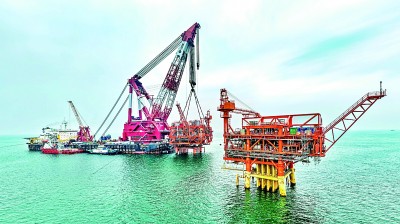 9月8日,随着重达4700吨的油气平台上部组块在渤海南部海域精准就位,垦利6-1油田10-1北区块Ⅱ期开发项目建设工作取得重要进展,渤海亿吨级油田又一油气平台完成海上安装。垦利6-1油田位于渤海南部海域,石油探明地质储量超1亿吨,是我国在渤海莱北低凸起浅层勘探领域发现的首个亿吨级岩性大型油田。图为当日,垦利6-1油田10-1北区块Ⅱ期开发项目油气平台完成海上安装。新华社发
