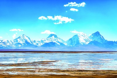 西藏日喀则市亚东县多庆错国家湿地公园拍摄的卓姆拉日雪山。光明图片/视觉中国
