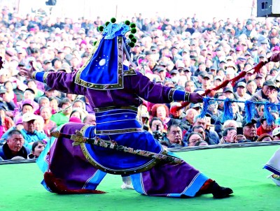 2025年3月8日,河南省安阳市内黄县宋村乡上演豫剧《花木兰》。光明图片/视觉中国