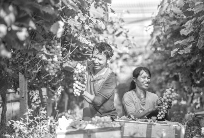 9月16日,湖南省永州市道县梅花镇修义村兴宜生态葡萄种植合作社基地,果农在采摘葡萄。近年来,修义村采取“支部+合作社+农户”模式,持续推动优质葡萄种植,深化农旅融合发展,促进农民增收,助推乡村全面振兴。蒋克青摄/光明图片