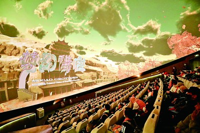 2014年,在距莫高窟15公里处,数字展示中心正式落成投运。游客先观赏影片,再实地参观。在翔实调研和反复调整的基础上,敦煌研究院探索出了“门票网络预约、单日总量控制、前端数字展示、后端洞窟参观”的旅游接待模式,让洞窟开放利用强度始终处于相对平衡的状态。