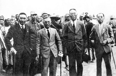 1940年5月,陈嘉庚(前排左二)等人抵达延安 图片由作者提供