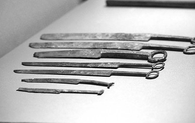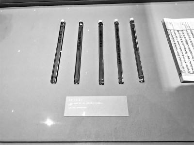 山东博物馆展出的春秋时期书刻工具。    新华社发