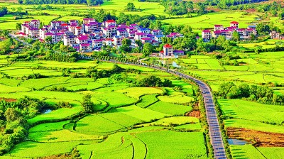 9月21日,江西吉安市泰和县马市镇南溪村,公路沿线阡陌纵横、房屋错落,风景宜人。朱海鹏摄/光明图片