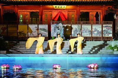 9月23日,在江苏无锡市古运河沿岸,演员为游客表演。新华社记者 胡智轩摄