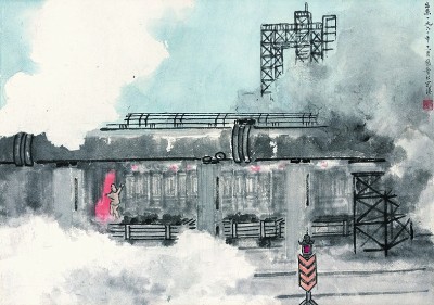 对生产建设场景的描绘,是新金陵画派画家们对传统绘画题材的一次突破。自20世纪50年代以来,不少画家在表现此类题材时呈现出简单地将传统山水加以现代人物点景的“夹生饭”模式,而在画家们深入生活的实践过程中,创作内容与艺术语言实现了超越。陈毅元帅曾对“山河新貌”画展这样评价:“这个‘夹生饭’烧好了,不是过去的添油加醋,而是从它的内容到它的形式,有了崭新的变化。”