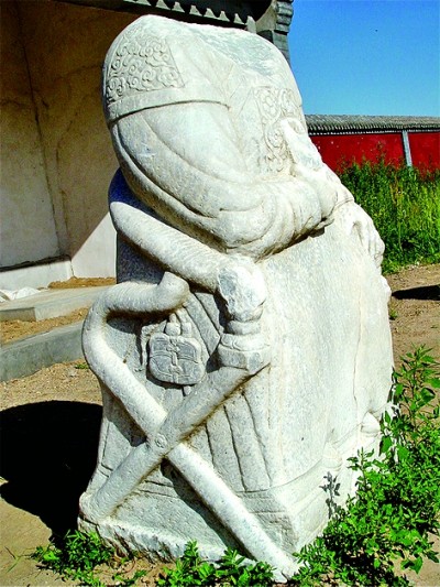 羊群庙祭祀遗址的发现与研究,是元代考古的重要收获之一。遗址由椭圆形石筑围墙、方形阶梯状祭台、汉白玉石雕像及亭阁式附属性建筑组成,反映了元代蒙古上层贵族的祖先崇拜思想。羊群庙的石雕像,属于蒙古民族偶像崇拜,应源于蒙古高原历史悠久的“鹿石文化”。其右手握杯于胸前的形态,与公元6至9世纪突厥人的石雕像有着密切的渊源,是蒙古民族万物有灵观念支配下的偶像崇拜与突厥人“石刻文化”融合碰撞的产物。依据文献资料分析,羊群庙奎树沟一带发掘的4处大型祭祀遗址,应是元代权臣燕铁木儿三代祖先的宗庙和燕铁木儿本人的生祠所在地。