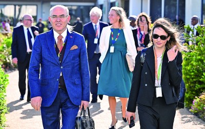 图为10月1日,在南非西开普省克莱因蒙德,与会代表抵达会场参加第十一届二十国集团议长会议开幕式。新华社发
