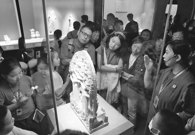 国庆中秋假期,人们走出家门,悦享假日时光。图为10月3日,游客在河北博物院内观展。 新华社发