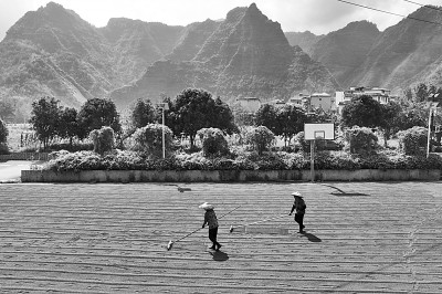 10月5日,重庆市黔江区小南海镇大路社区村民在晾晒高粱。国庆中秋期间,当地农民抓住时机抢晒水稻、玉米、高粱、辣椒等农作物,确保颗粒归仓,实现增收。杨敏摄/光明图片