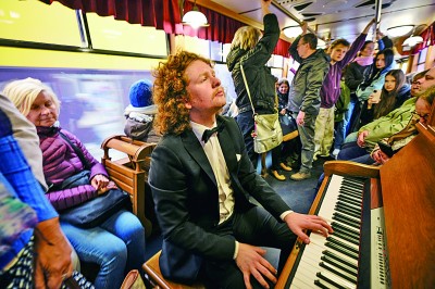 “肖邦电车”是在波兰华沙市举办肖邦国际钢琴比赛或相关纪念活动期间启动的公共活动。为纪念波兰最伟大的作曲家和钢琴家肖邦,华沙1927年开始举办肖邦国际钢琴比赛,自1955年起,每5年举办一次,素有“钢琴奥运”之称。第19届肖邦国际钢琴比赛目前正在举行,比赛将持续至10月23日。图为9日,在“肖邦电车”上,一名钢琴家为乘客演奏肖邦作品。新华社发