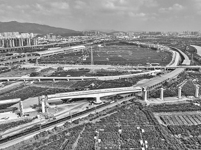 10月10日凌晨,由中铁二十五局承建的深江铁路广中江特大桥跨广珠货运铁路转体桥成功转体,该转体桥重达11216吨、跨度160米,位于深江铁路关键控制性工程广中江特大桥跨虎跳门桥段。深江铁路是我国“八纵八横”高铁网沿海通道的重要组成部分,该工程建成后,深圳与江门可实现1小时内通达。新华社记者 刘大伟摄