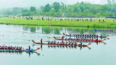 10月12日,安徽省合肥市大学生龙舟赛在合肥新站高新区少荃湖公园开赛。本次比赛共有中国科学技术大学、合肥工业大学、安徽职业技术大学等17支队伍、440余名大学生报名参加,在500米混合直道上角逐各组别名次,队员们在劈波斩浪中展现青春风采。图为参赛选手奋力挥桨。张敏摄/光明图片
