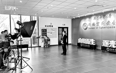 在北京邮电大学沙河校区网络空间安全学院,付俊松副教授在录制国家安全教育课。新华社发