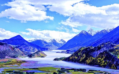 然乌湖位于西藏昌都市八宿县境内西南角,其特殊的地理环境,造就了它的多姿多彩。湖面如镜映衬着雪山巍峨,景色壮美。图为10月12日拍摄的然乌湖。王毅摄/光明图片