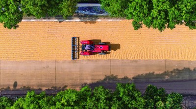 当前正值“三秋”生产关键期,各地加强农机和烘干设备调度力度,积极开展湿粮抢烘和晾晒作业,助力秋粮收获。图为10月14日,河南省驻马店市西平县二郎镇小王庄村,一辆农用车在翻晒玉米。 新华社发
