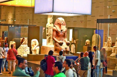 大埃及博物馆将于10月15日起暂时关闭,为11月正式开放做准备。该博物馆位于埃及吉萨金字塔景区附近,占地超过50万平方米,可容纳超10万件文物。图为14日游客在大埃及博物馆参观。新华社发