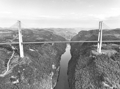 近年来,贵州省黔西市依托六广河大桥、鸭池河大桥、洱海河大桥等推进“桥旅”融合发展,助力乡村振兴。图为10月14日,黔西市太来彝族苗族乡和贵阳市修文县六桶镇之间的六广河大桥与青山、碧水交相辉映,构成一幅壮丽的交通山水画卷。周训超摄/光明图片