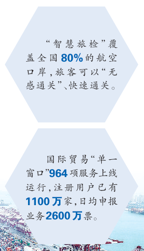 如今,国际贸易“单一窗口”已成为我国与世界贸易联通的“数字门户”,“一网通办”事项达到了25大类964项,基本覆盖了跨境贸易全链条全环节,线上、掌上通关办事已经成为常态。