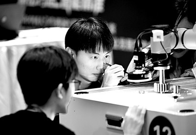 2025年中国大学生机械工程创新创意大赛智能精密装配赛京津冀鲁联赛中,选手在调试设备。新华社发