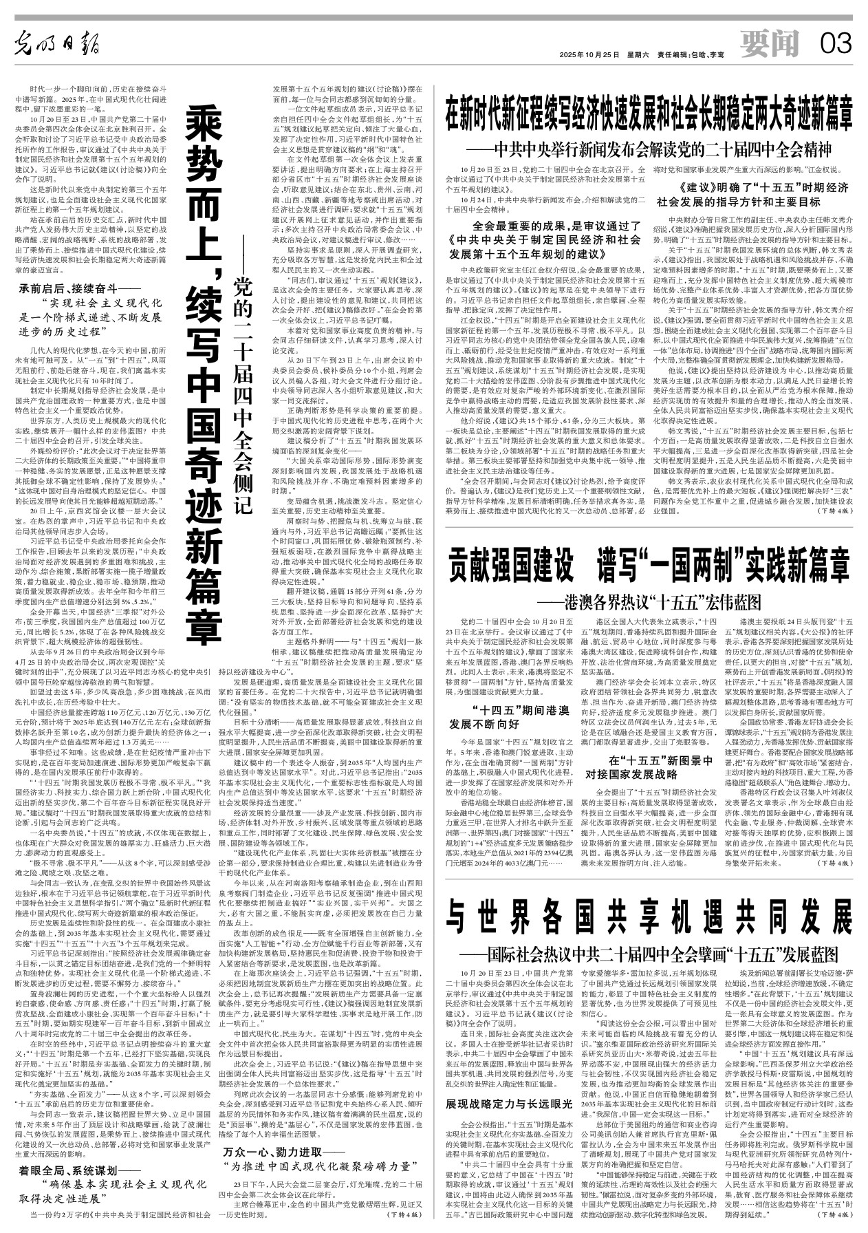 “同志们,审议通过‘十五五’规划《建议》,是这次全会的主要任务。大家要认真思考、深入讨论,提出建设性的意见和建议,共同把这次全会开好、把《建议》稿修改好。”在全会的第一次全体会议上,习近平总书记叮嘱。