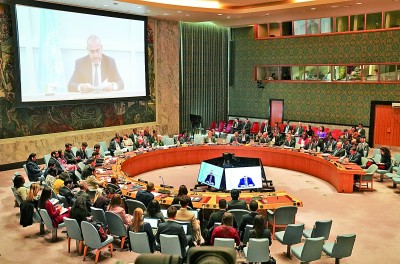 10月23日,在位于纽约的联合国总部,安理会举行中东问题公开辩论会。中国常驻联合国代表傅聪当日在联合国安理会中东问题公开辩论会上发言,强调必须实现加沙持久停火,尽快缓解加沙人道灾难,妥善推进加沙战后安排,重振“两国方案”政治前景。新华社发