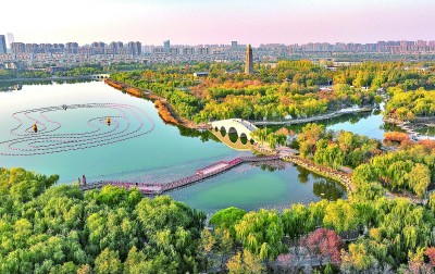 深秋时节,在塞上湖城宁夏银川市,各城市公园、湖泊湿地秋意盎然、景色宜人。图为10月28日在银川市海宝公园拍摄的秋景。新华社记者 冯开华摄