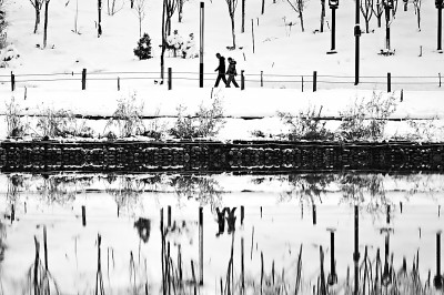 11月5日以来,新疆多地出现降雪天气。图为11月6日,人们走在乌鲁木齐市水磨沟区的一处公园里。新华社记者 辛悦卫摄