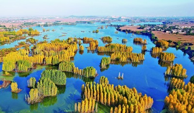 初冬时节,在河北省邢台市隆尧县亦城村泜河沿岸,树叶金黄,与水面、河岸相映衬,勾勒出一幅美丽和谐的自然画卷。近年来,隆尧县大力实施泜河综合治理与水生态涵养工程,通过开展河道疏浚整治、生态补水、沿河绿化等工作,将泜河打造成为“水清、河畅、岸绿、景美”的休闲打卡地,有效提升沿线村庄人居环境。新华社记者 牟宇摄