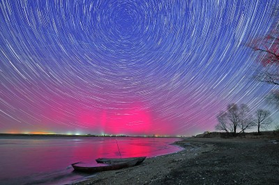 11月12日夜至11月13日凌晨,受地磁暴影响,中国最北省份黑龙江多地观测到绚丽极光。图为在齐齐哈尔市嫩江江畔拍摄的绚丽极光。