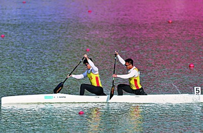 当日,皮划艇静水共产生了四个项目的金牌。男子500米双人划艇决赛,世锦赛银牌得主、山东队于岳斌/于陈伟延续强势表现。这对组合半决赛便以1分40.450秒锁定头名,决赛更是全程领跑,最终以1分37.800秒的成绩冲线卫冕;女子500米双人划艇赛场爆出冷门,浙江队李舒琪/薛丽娜以1分53.475秒夺冠。