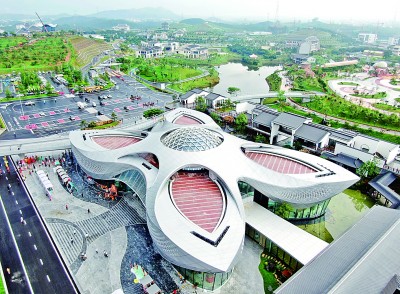 要体现荔枝的质感,必须采用玻璃倒挂方案。为了实现这个想法,我们引入国内优秀设计团队,光图纸就改了20多遍。直至看到由276个球体、725根杆件、405面曲面玻璃精密拼装而成的钢网架结构成型的穹顶时,我们感到一切都是值得的。