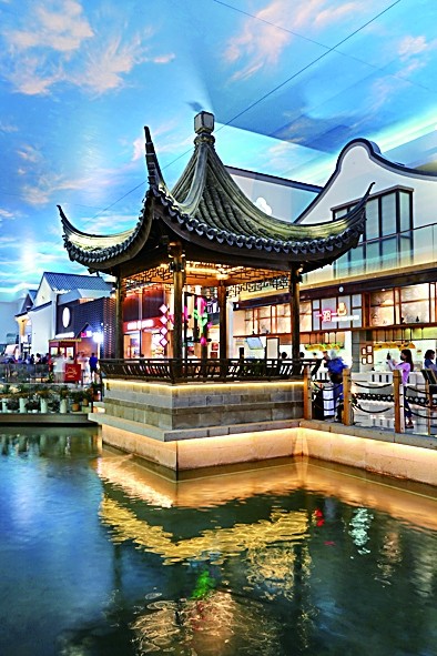 步入服务区,就像翻开一本立体的《姑苏繁华图》。长达273米的综合楼里,35种业态的品牌店铺沿着景观河道排布,让人仿佛置身“江南水街”。节假日期间,老戏台上的昆曲、评弹轮番唱起。非遗体验馆内的剪纸、澄泥石刻、宋锦等非遗作品展示等,吸引着不少大朋友、小朋友。