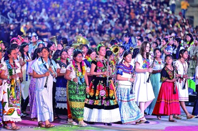 11月22日,在墨西哥首都墨西哥城宪法广场,儿童和青少年参加语言文化节活动。当日,墨西哥在首都墨西哥城举办原住民社区语言文化节,主题为“鲜活之声”。来自全国各地原住民社区的儿童和青少年用当地语言进行表演,以彰显墨西哥语言和文化的多样性。新华社发