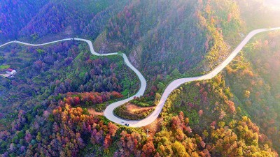 11月24日,湖北省黄冈市英山县温泉镇一天门村,四好农村路“梅沙线”两侧层林尽染,成为初冬时节一道亮丽风景线。王江摄/光明图片